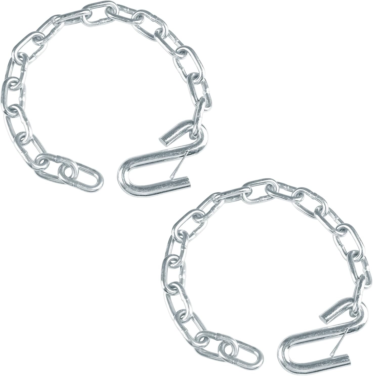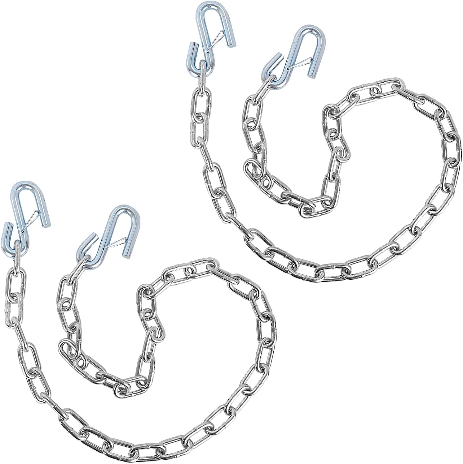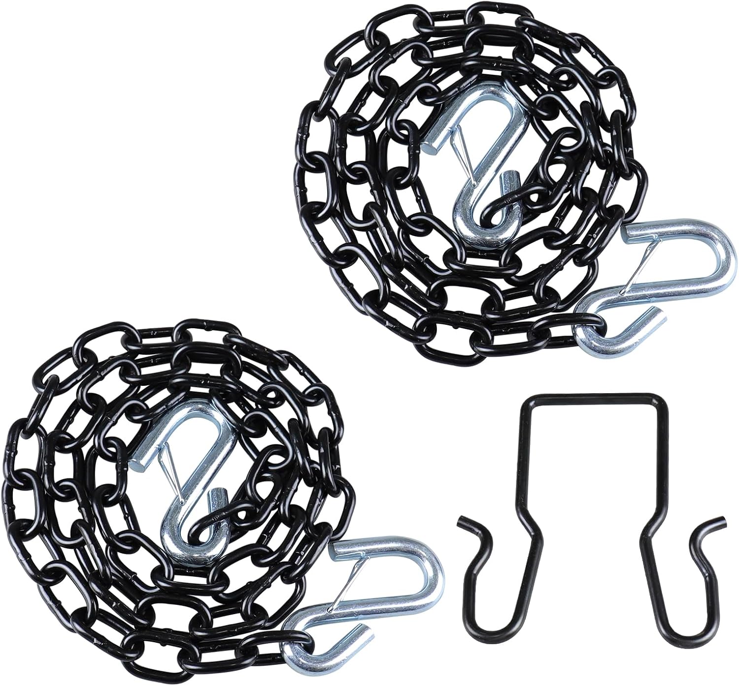 Upgrade your towing configuration and select the STEGEWOP trailer safety chain to provide stable support for trailer connections. The chain length is 27 inch and is made of 5/16 inch 30 grade chains. The trailer safety chain helps achieve a more reliable connection between trailers, RVS or campers and towing vehicles while maintaining robust performance. The trailer safety chain features a black e-coated finish for added resistance against rust and surface wear, while the zinc-plated trailer chain hooks provide a convenient and practical way to secure your towing equipment. With a 7000 lbs Capacity, it is well-suited for towing needs that require reliable connections. The matching trailer safety chain bracket can be mounted on a 2-inch x 2-inch hook handle, featuring a simple snap-in design for broad vehicle compatibility. Whether you're traveling with a trailer, setting up a camper, or hauling equipment, these trailer safety chains with hooks offer a balanced combination of strength, durability, and ease of use. Designed with practicality in mind, These trailer safety chains with hooks help enhance towing safety and provide added confidence on the road.
